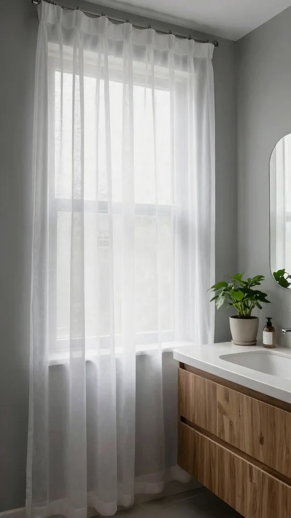 Select moisture-resistant sheer fabric to ensure durability in humid conditions. You can hang them over a small window or frame a large vanity mirror, making the area feel larger and more open. Pairing sheer curtains with natural materials like wood or stone helps create a calming design that feels cohesive.